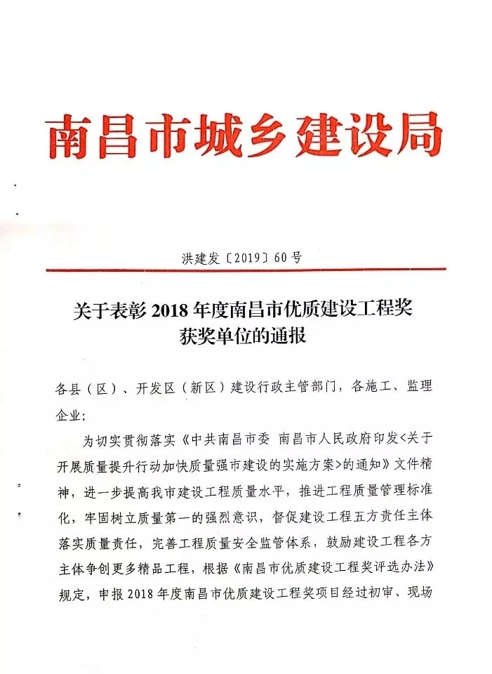 未来,我司将继续深入贯彻落实《中共南昌市委 南昌市人民政府印发<关于开展质量提升行动加快质量强市建设的实施方案>的通知》文件精神,进一步加大质量管理力度,提高公司建筑工程质量水平,打造更多精品工程,为南昌市建筑行业创绩创优!